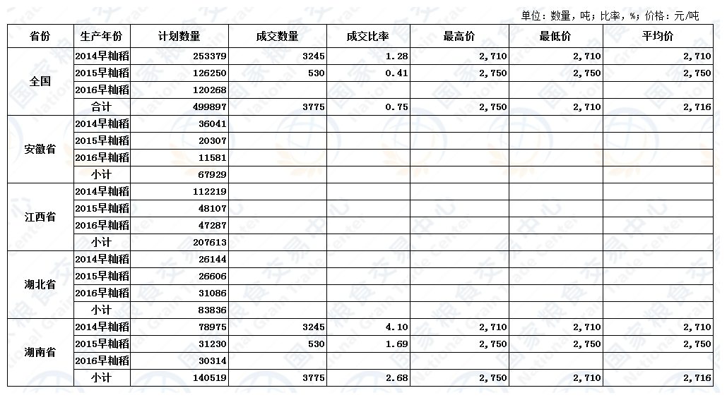 湖北粮网: 交易结果